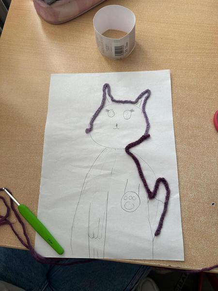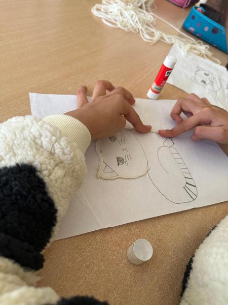 Eindrücke aus der Handarbeits-AG - Aktuell arbeiten die Kinder an verschiedenen Projekten aus Wolle, z.B. häkeln sie einen Sorgenwurm, Sticken Muster, gestalten Luftmaschentiere oder Buchstaben aus Woll.