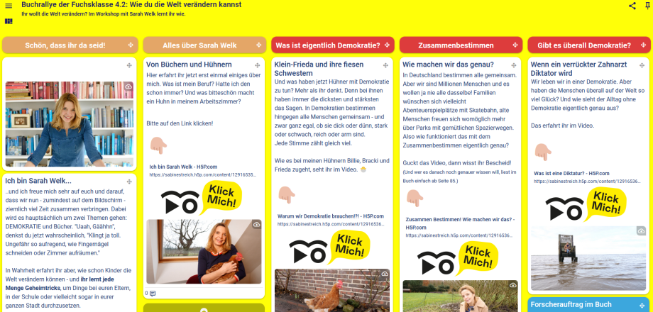 Über die Pinnwand erhielten die Kinder verschiedene Aufträge, um sich mit dem Thema näher auseinander zu setzen. In den Kommentaren konnten sie Fragen notieren oder auch von ihren eigenen Erfahrungen berichten. Sarah Welk hat auf der Pinnwand mitgelesen und kommentierte ebenfalls. So fand über die digitale Pinnwand ein erster Austausch zwischen den Kindern und der Autorin statt.