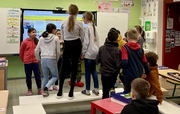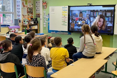 Professionelle Beratung bekam die Klasse in einer Online-Konferenz mit der Autorin. Über die neue digitale Tafel hat das richtig gut funktioniert.