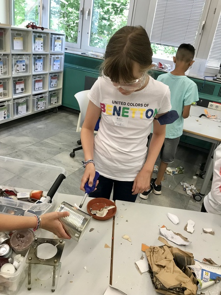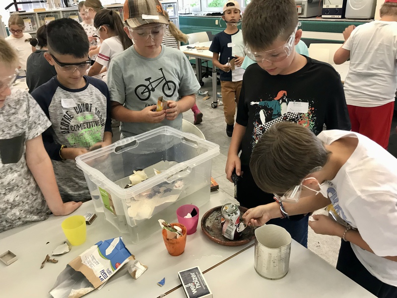 Am 14. April 2023 besuchte die Pinguinklasse (Klasse 4.3) das Grundschullabor für Offenes Experimentieren – kurz Gofex – auf dem Campus der Universität Saarbrücken. In dem grundschulgerechten Labor steht das naturwissenschaftliche und offene Experimentieren im Vordergrund. Hier setzte sich die Klasse mit dem Thema „Müll und Recycling“ auseinander. Die Schulkinder gingen der Frage nach, was eigentlich mit unserem Müll passiert, nachdem wir ihn zu Hause in die Tonne geworfen haben. Mithilfe von Experimenten wurde versucht, unterschiedliche Bestandteile von Müll zu trennen und zu bestimmen. So konnte gezeigt werden, dass die einzelnen Schritte der Müllverarbeitung auf physikalischen und chemischen Phänomenen beruhen. Dabei wurden auch Fragen nach Müllvermeidung, Re- und Upcylcing thematisiert.