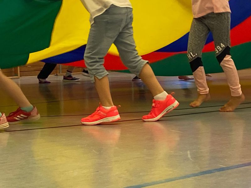 Auch die Faultierklasse 1.2 ist diese Woche hochmotiviert mit unserem Projekt „Konflikte mit Worten lösen - Bei Stopp ist Schluss“ beschäftigt. So wurde beim Eisschollenspiel die Teamfähigkeit der