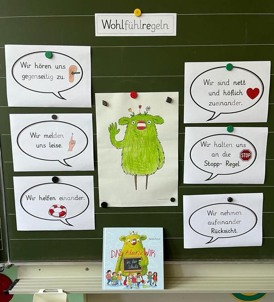 Nachdem wir am nächsten Tag über Gefühle gesprochen und unsere eigenen am Gefühlsbarometer eingestellt haben durften wir heute „Das kleine Wir“ von Daniela Kunkel kennen lernen. Es schrumpft und wächst- manchmal geht es sogar verloren. Wir haben „Das kleine Wir“ schnell in unser Herz geschlossen und überlegt, ob es in unserer Faultierklasse auch ein „Wir“ gibt. Wir mussten sofort an das Eisschollenspiel denken und konnten diese Frage ganz klar mit „ja“ beantworten. Anschließend haben wir uns überlegt, was wir tun können, damit unser „Wir“ wächst: