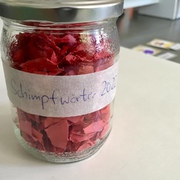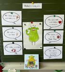 Die Klasse erstellte eine Schimpfwörter-Sammlung und stellte Reaktionen auf diese Provokationen und Beschimpfungen zusammen. Einigen Kindern fiel es dabei sogar recht schwer, die Schimpfwörter laut auszusprechen. Da diese Wörter aber eh unerwünscht sind und alle versuchen wollen, diese in Zukunft nicht mehr zu gebrauchen, wurden sie am Ende des Projekttages von den Kindern „vernichtet“. Die Klasse bewahrt sie aber als Erinnerung an den guten Vorsatz in einem Einmachglas im Klassenzimmer auf.