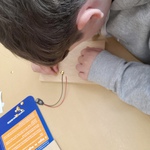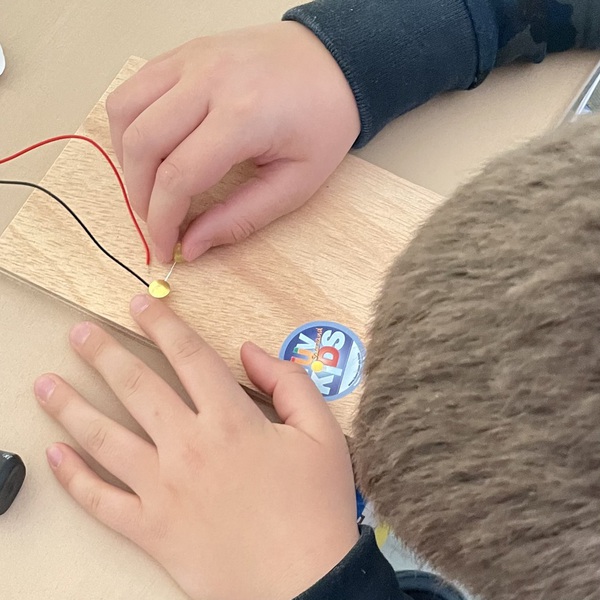 Anleitung von Frau Steimer unsere Stromprüfgeräte. So konnten wir schließlich selbst überprüfen, welche Materialien Strom leiten oder nicht leiten.